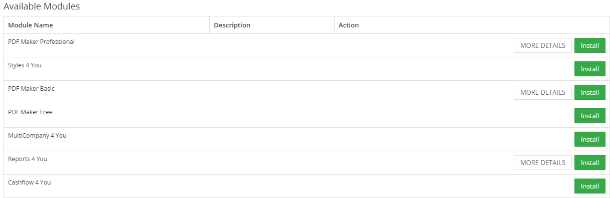 • Vtiger Extensions, Modules, Addons